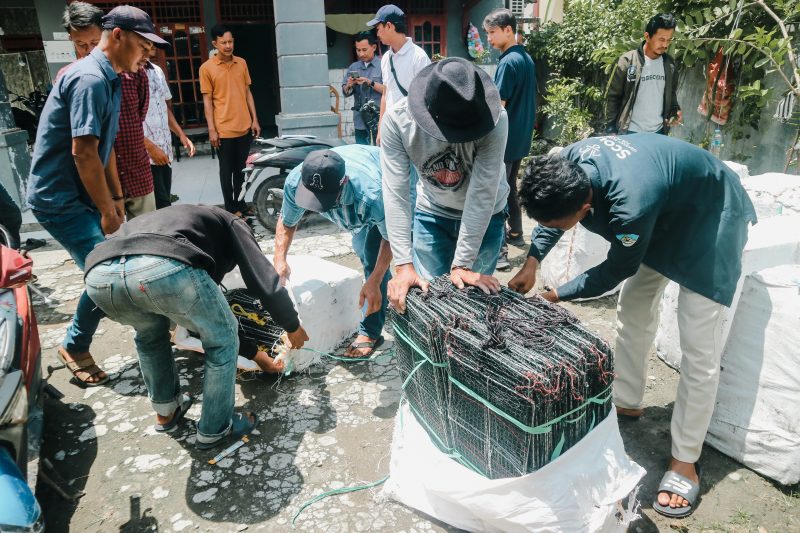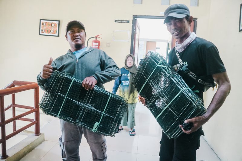 A total of 50 beneficiary gillnet fishermen from Mertasinga Village participated in the activity. In total, 1,000 bubu traps were distributed to fishermen groups in collaboration.
