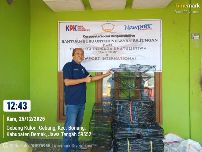 by adminapri December 31, 2025 0 commentsOn December 25, 2025, PCA Group once again demonstrated its commitment to sustainable fisheries by distributing NOAA-recommended crab traps (bubu) to blue swimming crab fishermen in Mro Village, Demak Regency, Central Java. This initiative aims to support the transition from gillnets to more environmentally friendly fishing gear that is safe for marine mammals and aligned with international conservation standards.