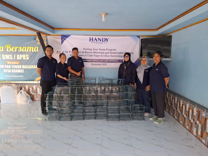 The transformation toward a more sustainable blue swimming crab fishery continues across Indonesian coastal regions. As part of this ongoing effort, TRO Handy Seafood Inc, one of the active members of the Indonesian Blue Swimming Crab Association (APRI), has once again distributed crab pots (bubu) to fishers in Kramat Mengare Village, Gresik.